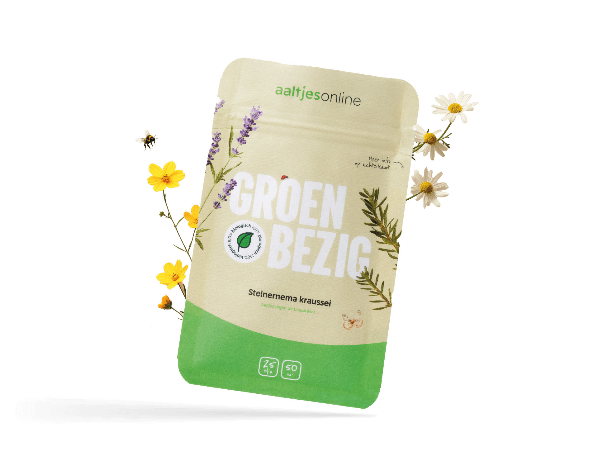Aaltjes zijn levende organismen en daardoor beperkt houdbaar. Het is essentieel om ze zo snel mogelijk na ontvangst in te zetten voor het beste resultaat. Indien nodig kunnen de aaltjes maximaal zeven dagen in de koelkast worden bewaard bij een temperatuur tussen de 3 en 5°C. Herhaal de behandeling na twee tot drie weken om de plaag volledig te bestrijden.