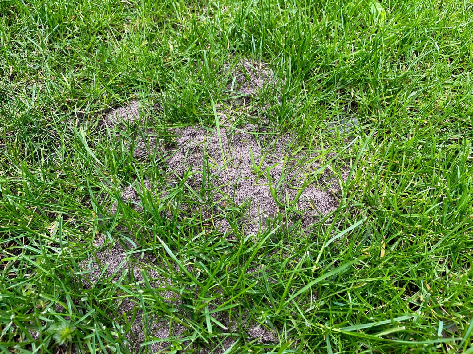 Mieren zitten in grote hoeveelheden in het gras. Hierdoor kunnen er in de loop der jaren kale plekken ontstaan. De verplaatsing van het zand zorgt namelijk voor kleine hoopjes. Het gras kan door deze ophopingen niet goed meer ademen, waardoor het uiteindelijk dood gaat. Dit herken je gemakkelijk doordat er zand ligt in de kale plekken. Als je gazon hier last van heeft, kies er dan zeker voor om mieren in de tuin te verdelgen.